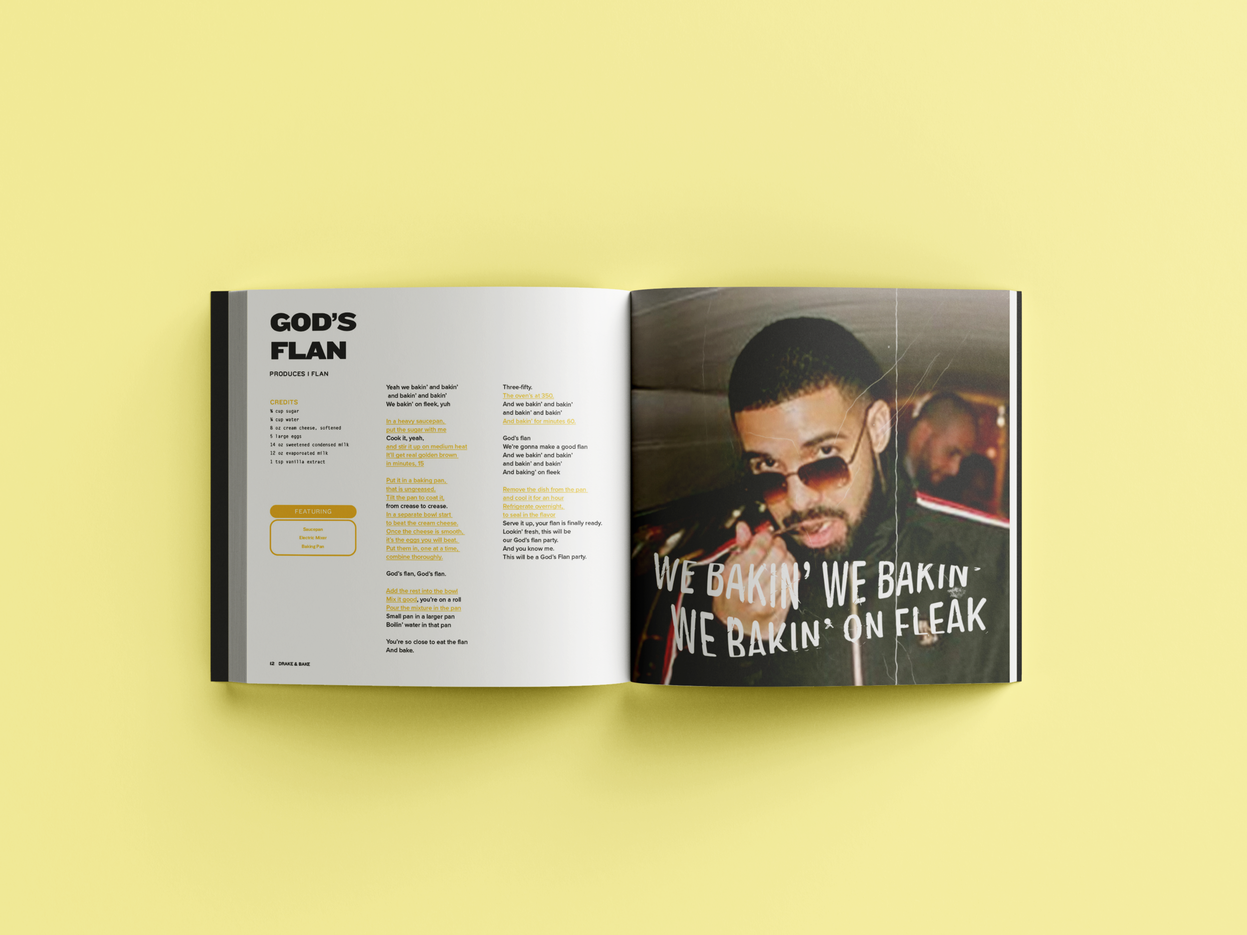 Why Drake? Because his name rhymes with bake and his songs are incredibly easy to make puns out of (see God’s Flan, Hotline Pudding, Hold On We’re Goin’ Scone, for reference).